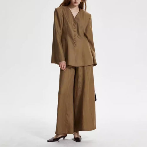 Female V-neck Single Breasted Jacket Long Pants Set