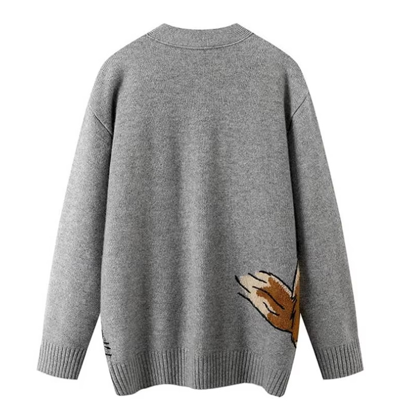 Women's Jacquard Pattern Knitted Long Sleeve Cardigan