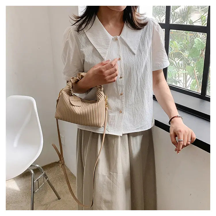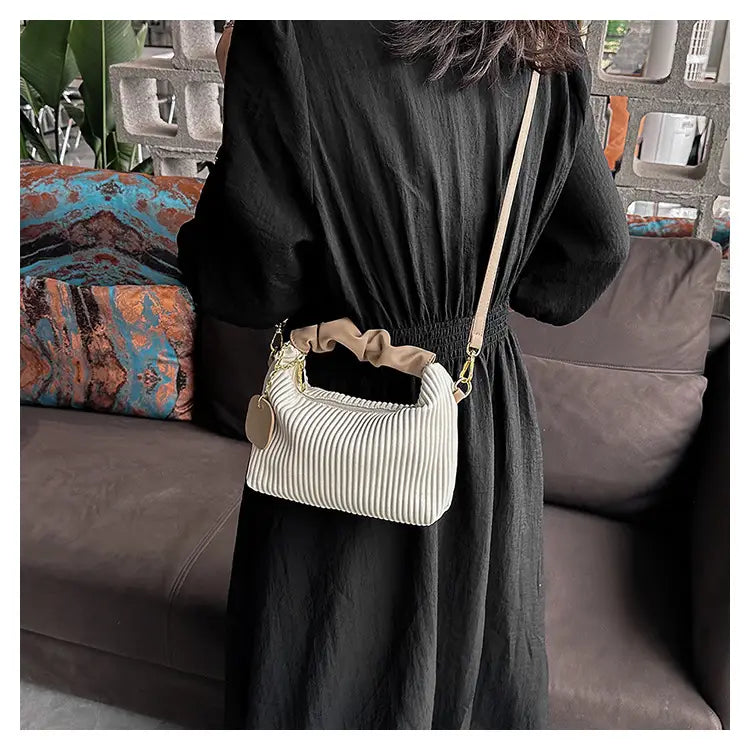 4. Design à la mode : Avec son design plissé et sa bandoulière réglable, ce sac est à la fois élégant et polyvalent. Il peut être porté en bandoulière ou en sac à main, ce qui le rend facile à assortir à différents styles et tenues.