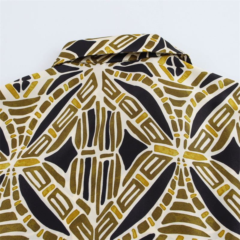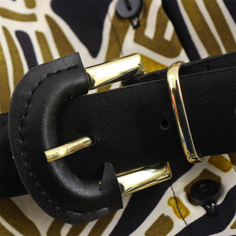 Fashionable Temperament With Belt Printed Long Sleeve Dress